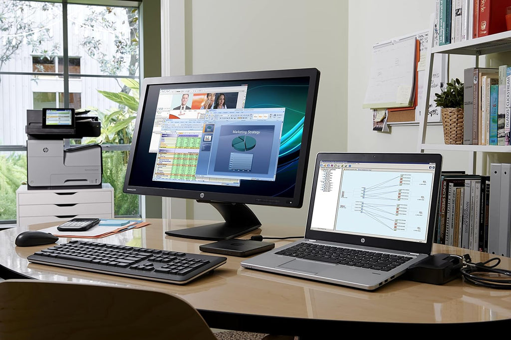Designed exclusively for ultraslim HP EliteBook Notebooks. Expands display, network, and device connectivity so you can be more productive throughout the day—all through a simple one-click slide-in side dock. Four USB 3.0 ports offer high-speed connectivity to the USB devices you use most. USB 3.0 reduces the time required for data transmission (vs. USB 2.0)1, is backward compatible with USB 2.0, and is bi-directional. Display Port and VGA ports deliver legacy and future compatibility with your choice of video devices and an Ethernet/LAN port keeps you online. Compatible with EliteBook 720 G1-G2, 725 G2-G4, 740 G1-G2, 745 G2-G4, 750 G1-G2, 755 G2-G4, 820 G1-G4, 840 G1-G4, 850 G1-G4, 1020 G1, 1040 G1-G3; EliteBook Folio 9480m, 9470m; EliteBook Revolve 810 G1, 810 G3; Pro x2 612 G1; ProBook 640 G2-G3; ZBook 14; ZBook 14u G4; ZBook 15U G3-G4 Mobile Workstation.